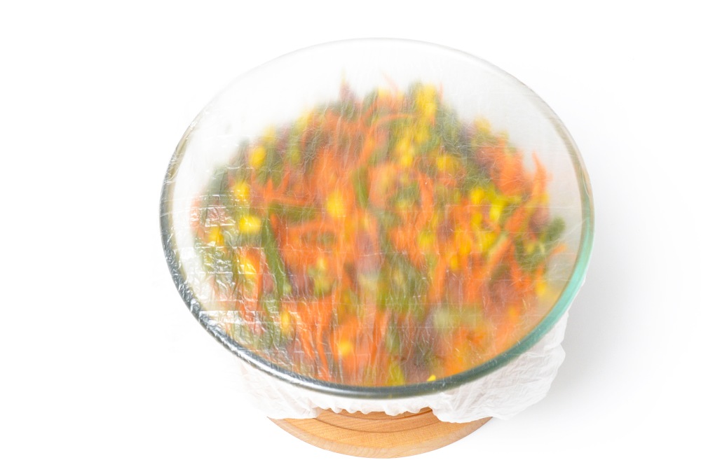 - Добавляйте соль умеренно, так как она может содержаться и в моркови по-корейски, и в консервированной фасоли.