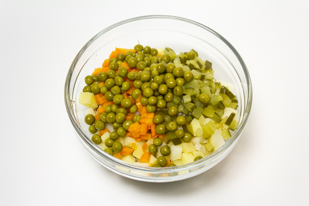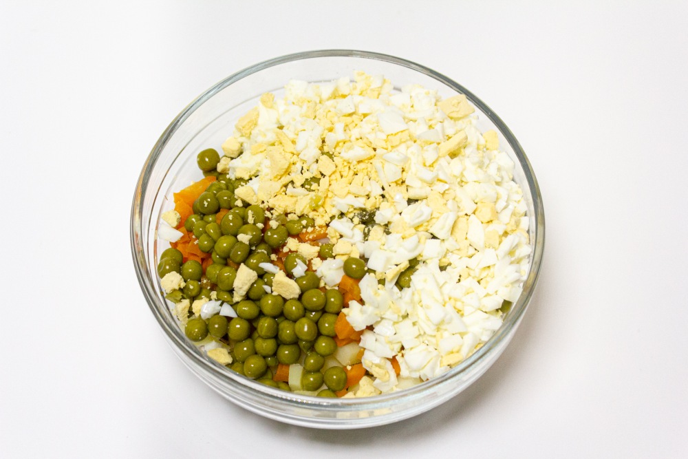 – Не переваривайте овощи и яйца — пусть они будут плотными, а не водянистыми, иначе салат “поплывёт”.