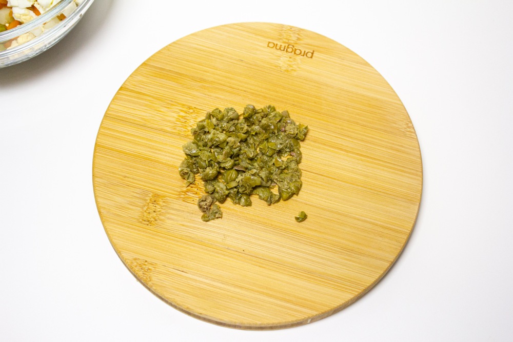 – Добавьте в заправку маринованные каперсы или немного лимонного сока для пикантности и свежести.