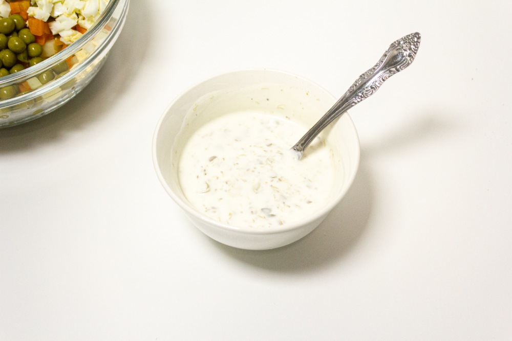 – Заправляйте салат непосредственно перед подачей — если сделать это заранее, йогуртовый соус может сделать блюдо водянистым.