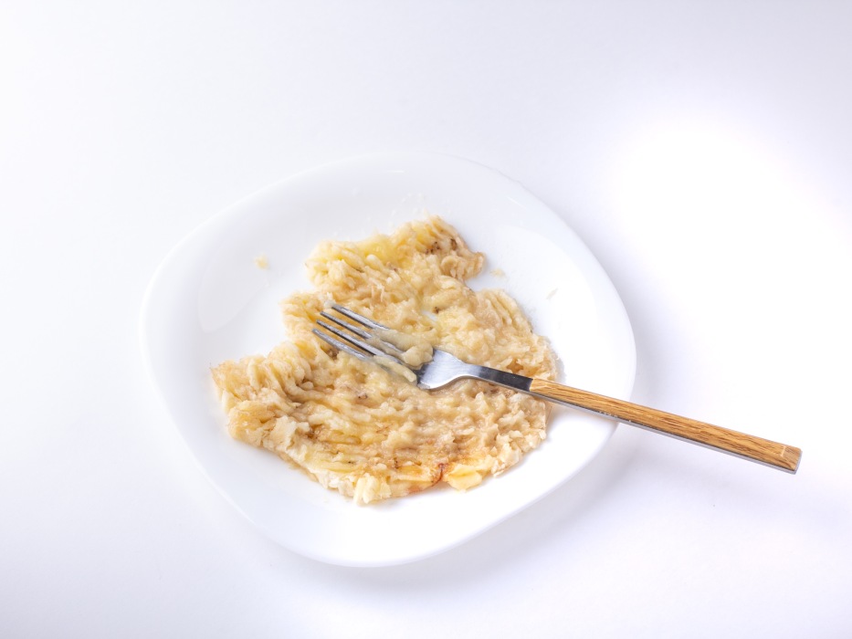 Очистить спелый банан (чем мягче, тем лучше). Положить его в отдельную небольшую тарелку и тщательно размять вилкой до состояния однородного мягкого пюре без крупных кусочков.