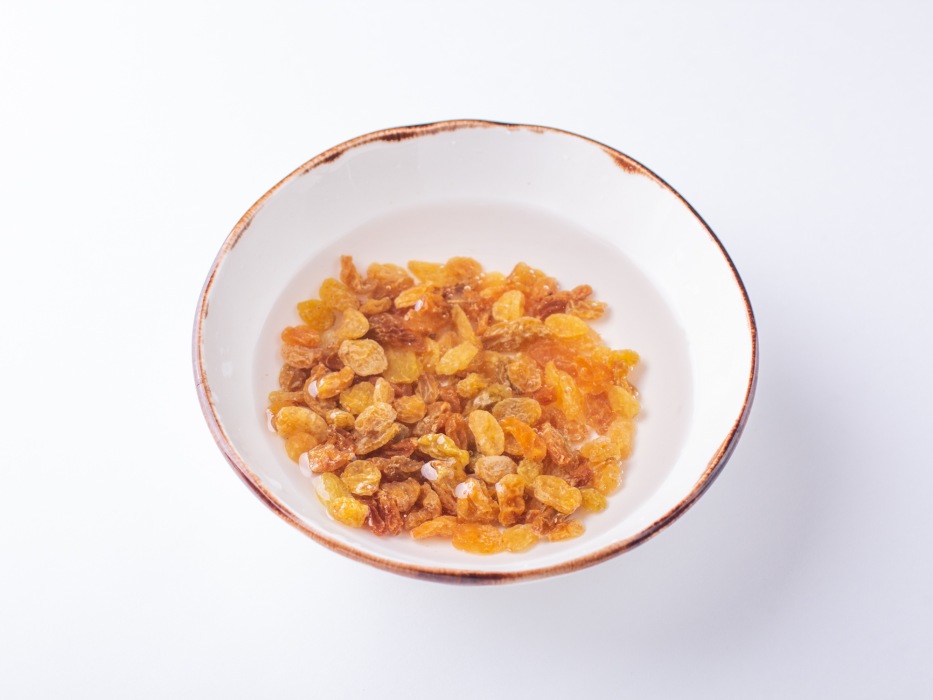 Изюм промыть водой и высушить бумажным полотенцем.