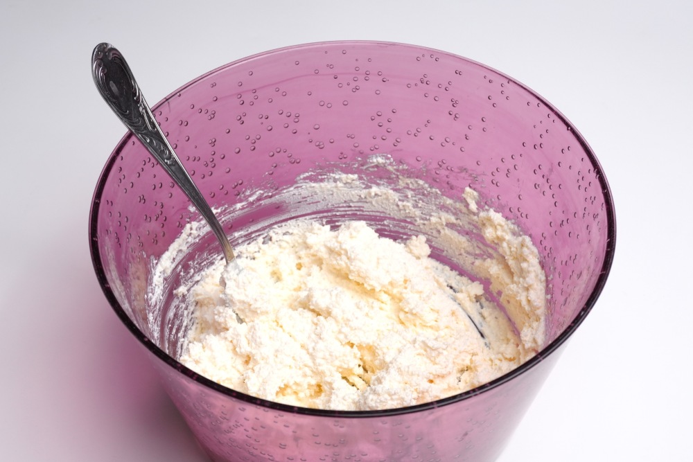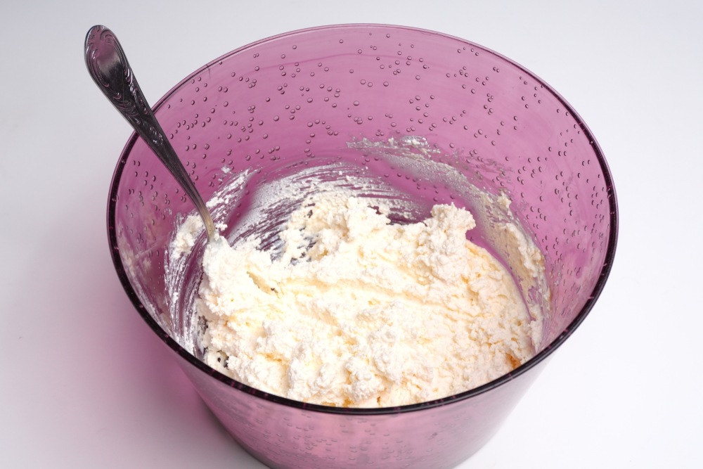 Добавить к творожной массе муку (2 ст.л.), перемешать.