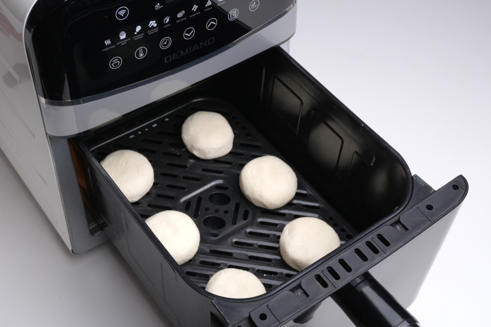 Шарики слегка приплюснуть, выложить на решетку аэрогриля.