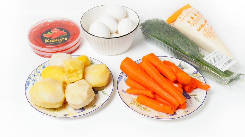 – Картофель и морковь можно нашинковать диском-теркой в комбайне, а яйца нарезать насадкой для кубиков, если она имеется. Однако нарезать ею рыбу не следует – получится фарш.