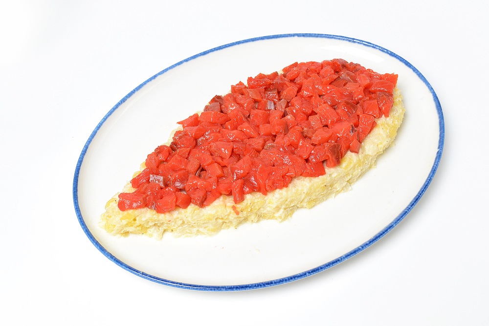 На овальное блюдо выложить первый слой – картофель, смешанный с майонезом.