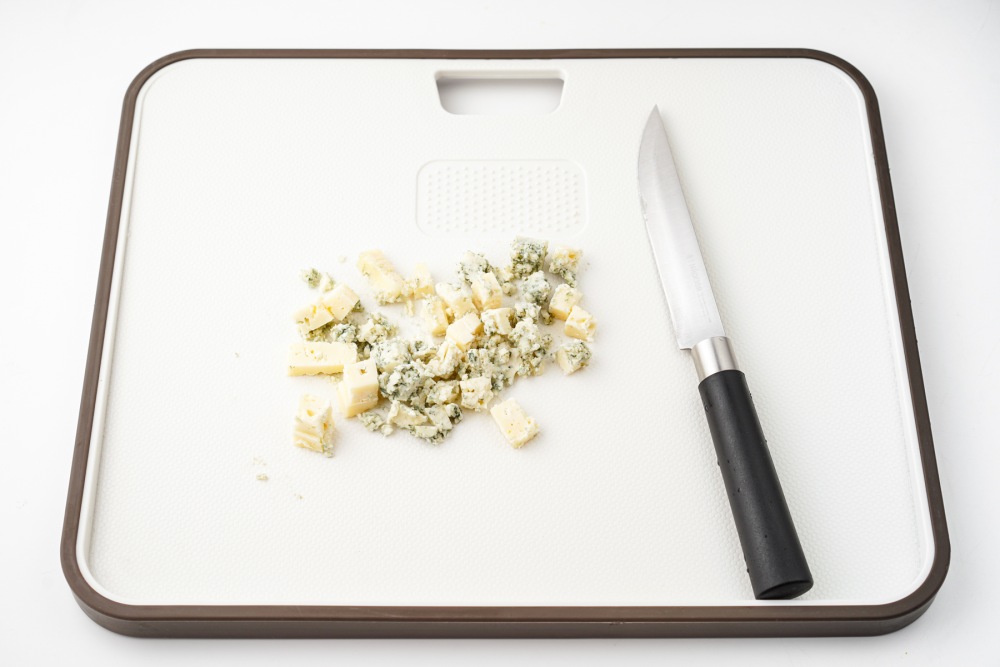 Нарезать сыр небольшими кубиками или аккуратно разломать руками, если он мягкий. Стараться делать кусочки примерно одного размера, чтобы вкус распределялся равномерно.