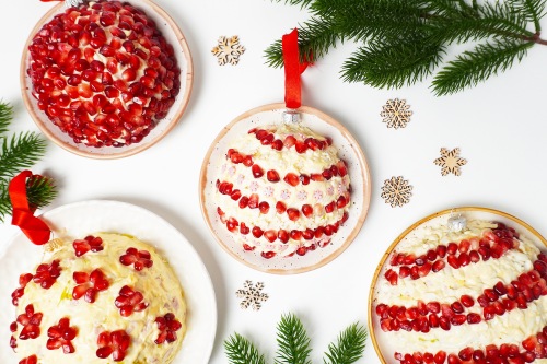 Такой салат хорошо подходит для новогоднего стола, семейного праздника или ужина с гостями. Его удобно подавать порционно или на большом блюде. Он хорошо сочетается с белым вином, запеченной птицей, легкими закусками и не перегружает стол.
