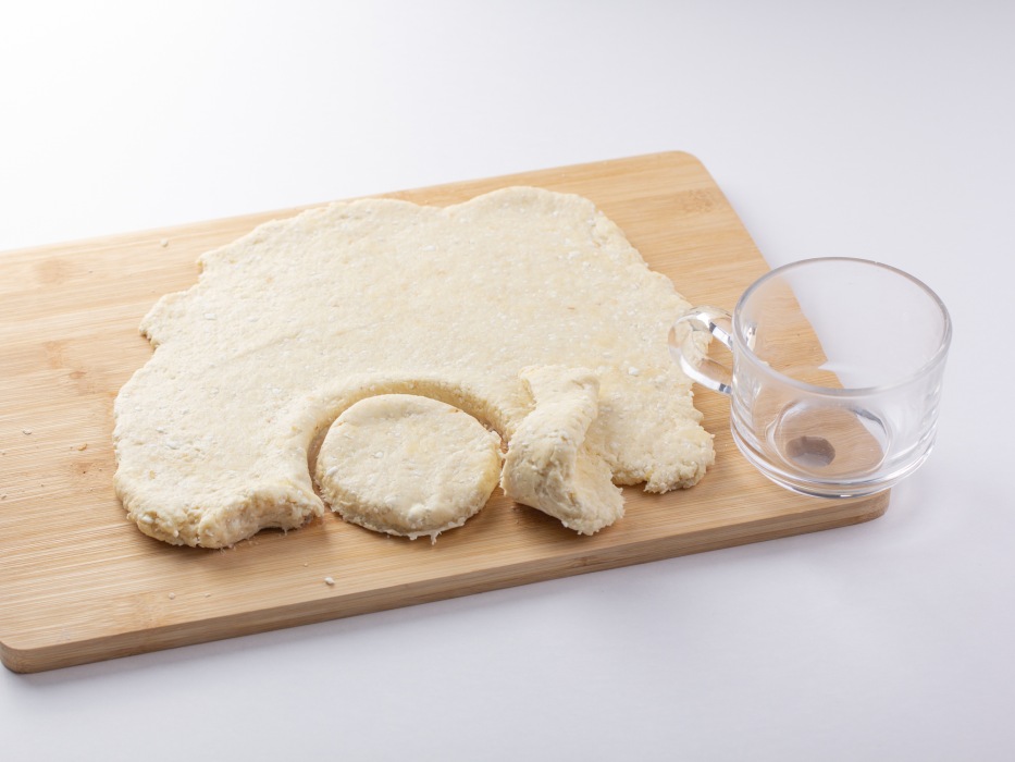 Выдавить с помощью стакана кружочек для будущего печенья.