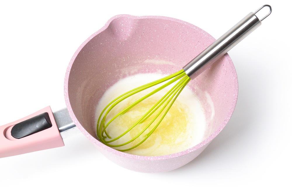Пока остывают овощи, приготовить подливку. Масло растопить в небольшой кастрюле на огне чуть выше среднего (4/6 для электроплиты).