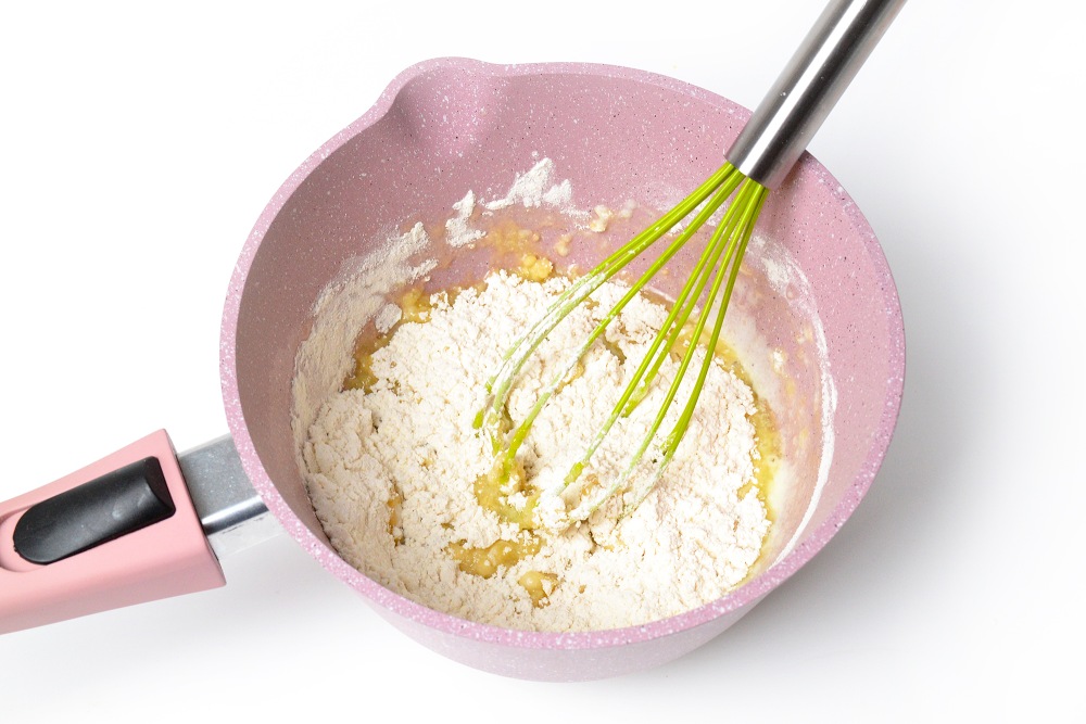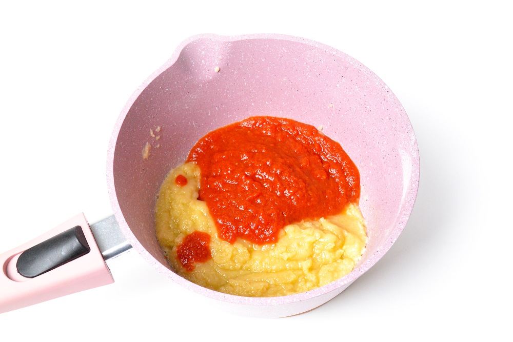 - Обязательно добавляйте к муке с маслом и томатной пастой холодную, а не горячую воду, тогда 100% не будет никаких комочков.