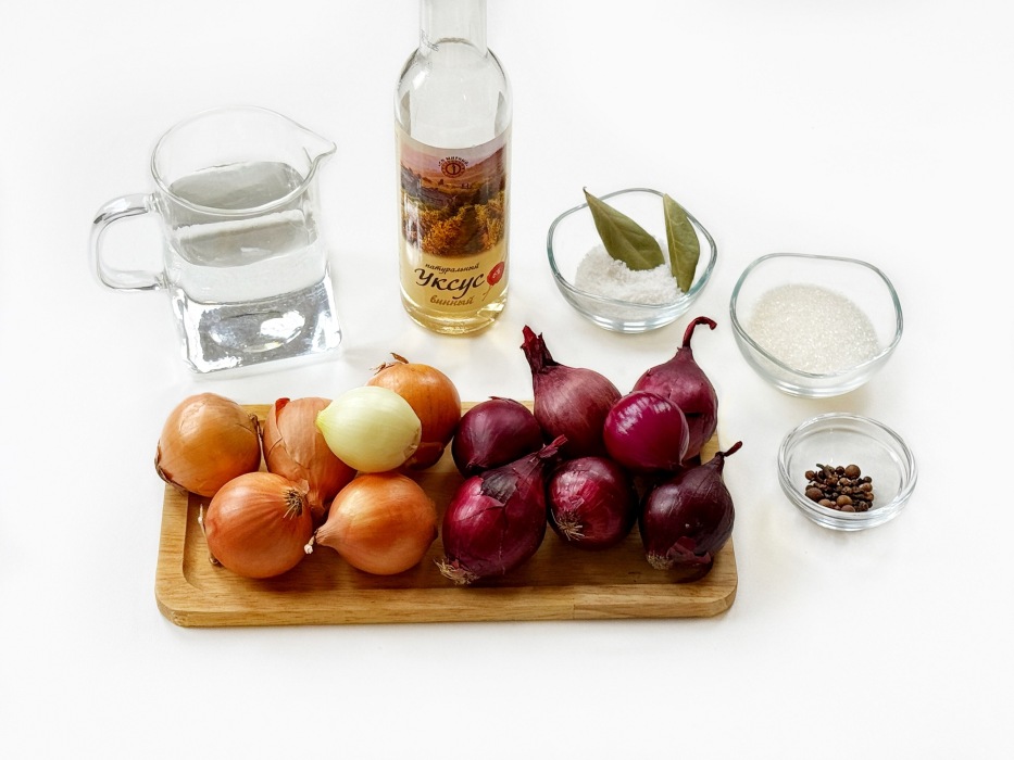 Подготовить ингредиенты для приготовления маринованного лука на зиму.