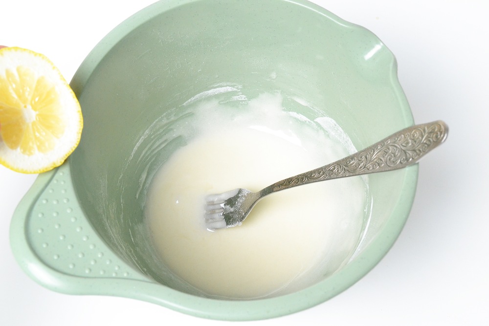 Добавить 0,5 ч. л. лимонного сока и еще раз взбить вилкой 3-4 минуты. Готовую смесь перенести в кондитерский мешок с насадкой с отверстием 2-3 мм. Или просто отрезать кончик мешка.