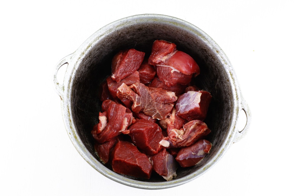 Выбрать казан, который по размеру подходит для нужного количества говядины. Он должен быть достаточно вместительным, чтобы мясо располагалось в нем равномерно, без перегрузки.
