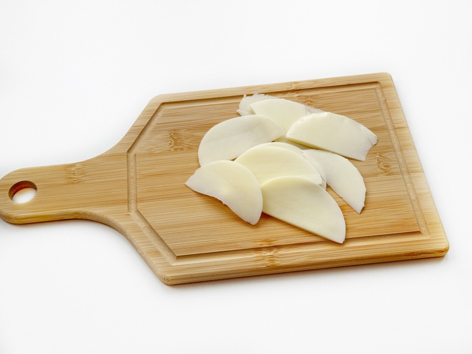Пока корж в духовке, нарезать моцареллу. Подготовить пепперони и другие ингредиенты. Я использовала уже нарезанную пепперони в тонких слайсах, это удобно.