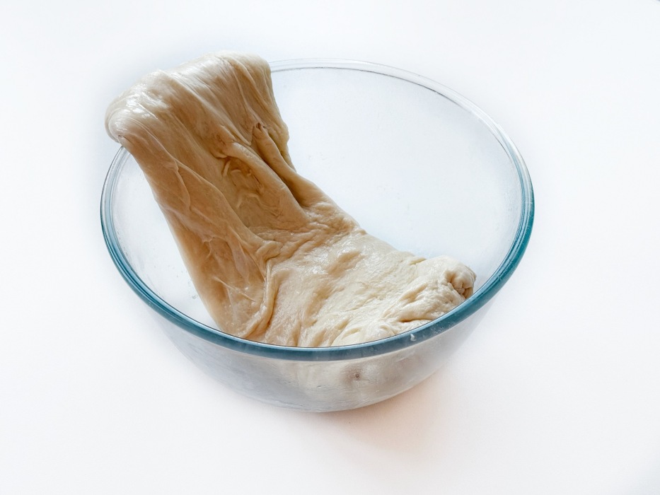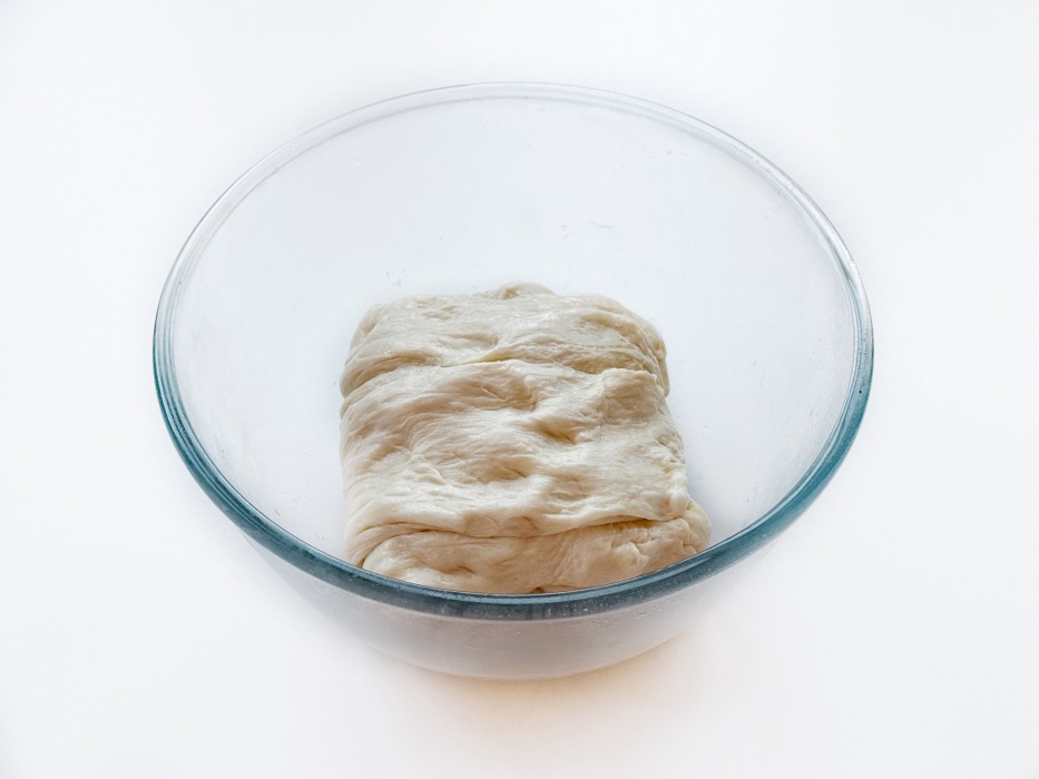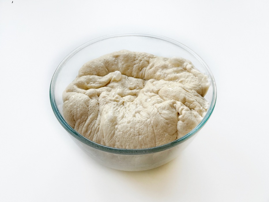 Тесто станет упругим. Накрыть миску и убрать тесто в холодильник на 12–18 часов. Если есть возможность, несколько раз обомните тесто.