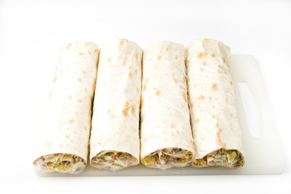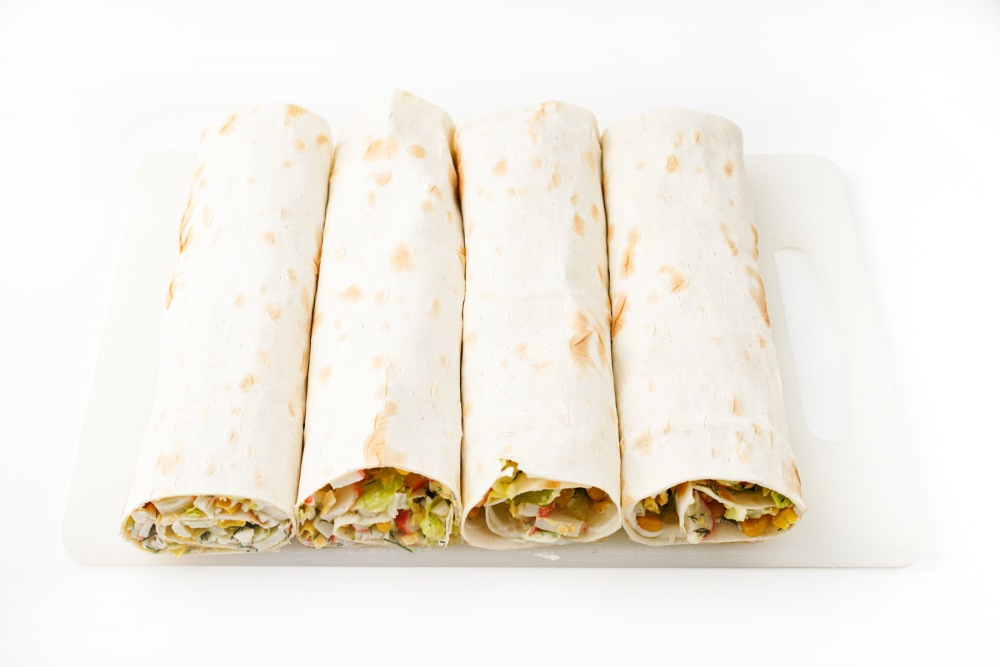 -Использовать тонкий и свежий лаваш – он легко сворачивается и не рвётся при формировании рулета.
