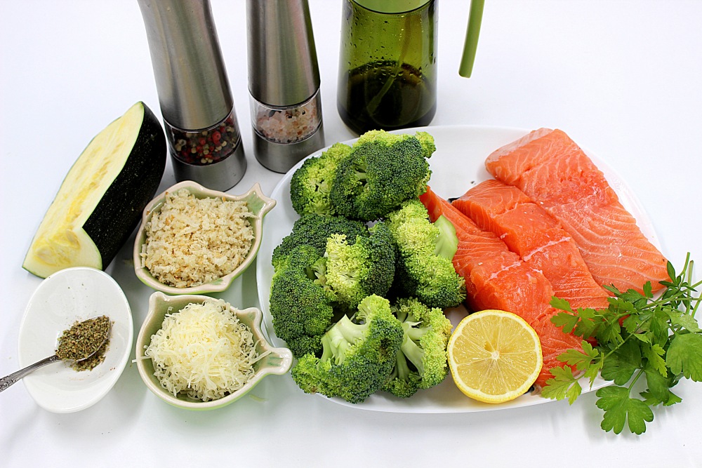 Подготовить все ингредиенты для приготовления рыбы с брокколи в духовке.