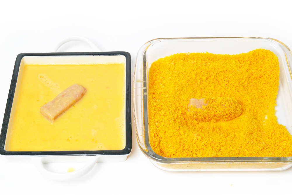 Со всех сторон обвалять палочки в яйце, а затем в сухарях.