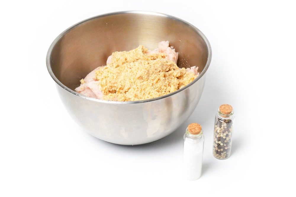 Совет: панировочные сухари для фарша я беру обычные, из домашнего батона (250 г). А для панировки использую магазинные – у них крупнее текстура, в состав входят дрожжи и куркума.