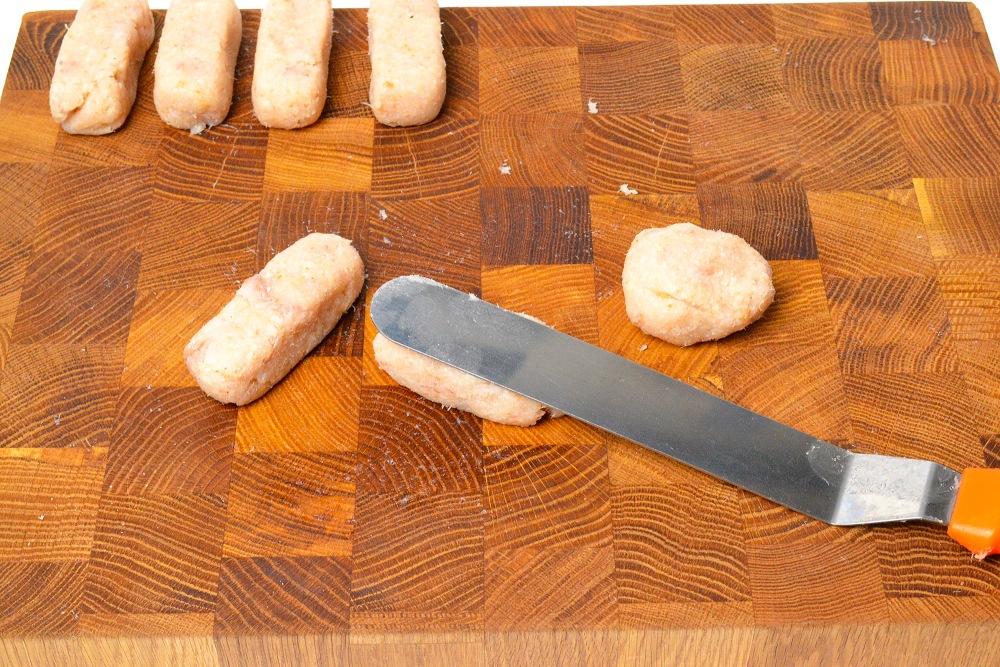 - Чтобы палочки держали форму, делайте фарш достаточно густым. Перед формовкой отбивайте отделенную порцию в руке.