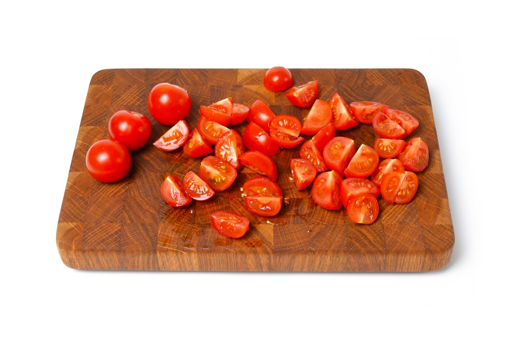 Помидоры нарезать пополам или четвертинками, если достаточно крупные.