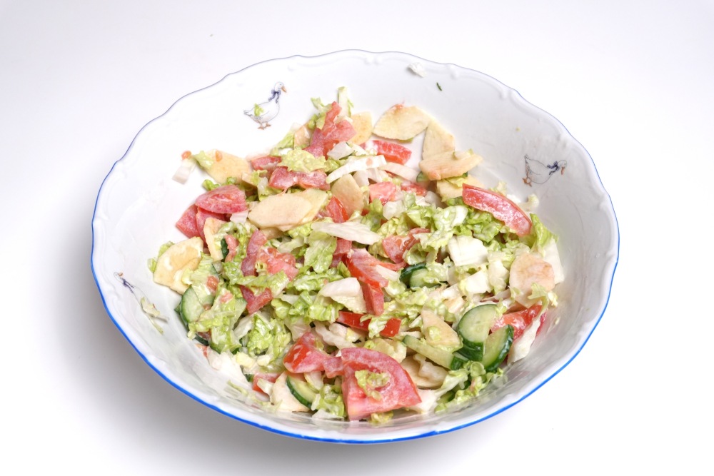 Что сделает салат из пекинской капусты с курицей и помидорами вкуснее: