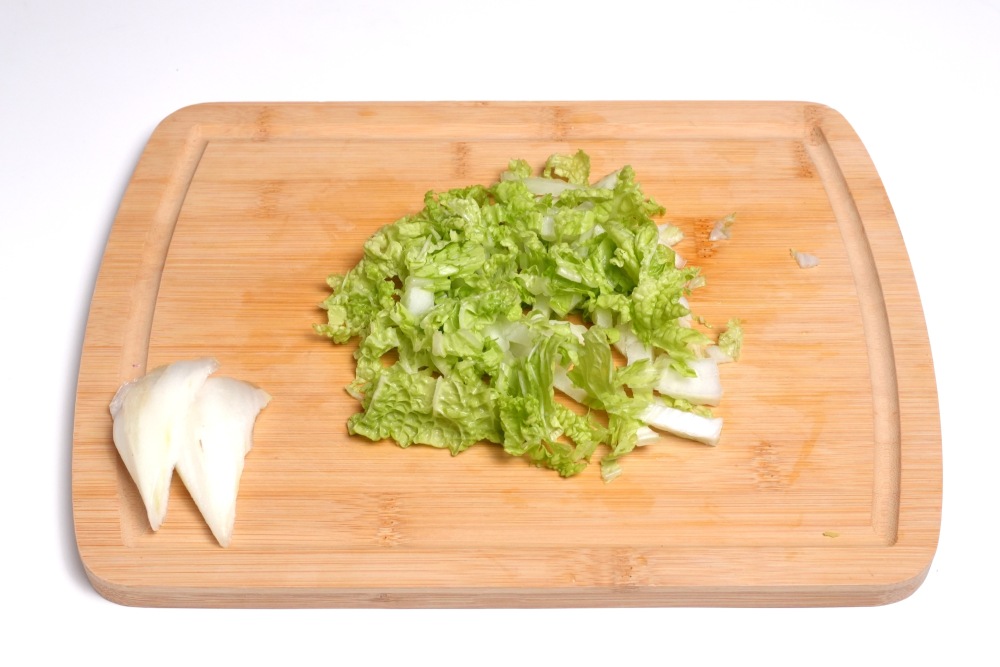 У капусты удалить сердцевину, остальную часть нарезать тонко.