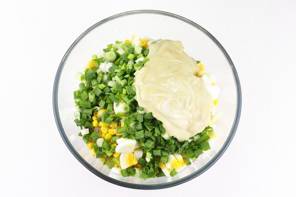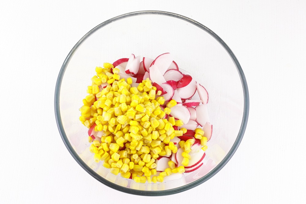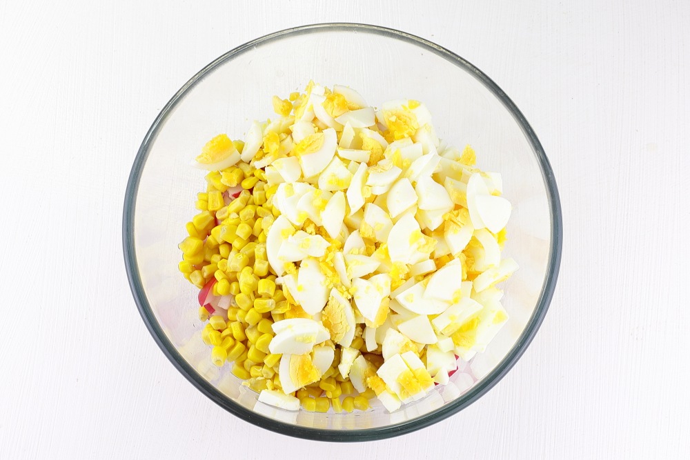 Как упростить приготовление салата из редиски с яйцом и кукурузой: