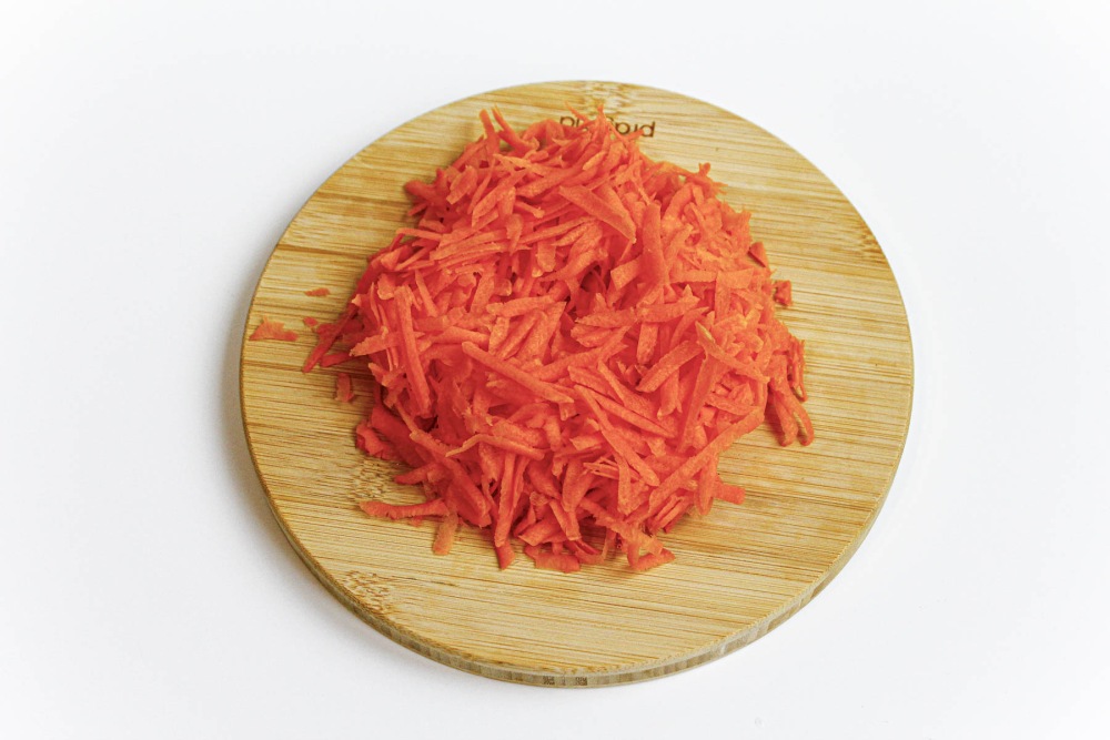 Морковь промыть и аккуратно очистить от кожуры и натереть на крупной терке.