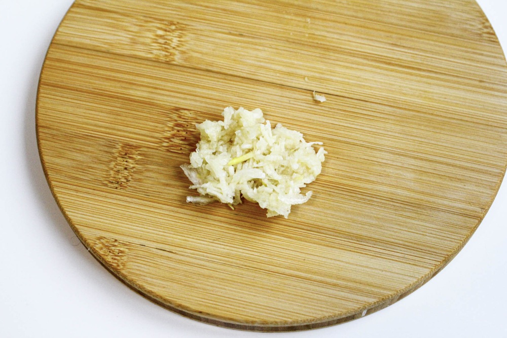 Зубчик чеснока очистить от кожуры и натереть его на мелкой тёрке.