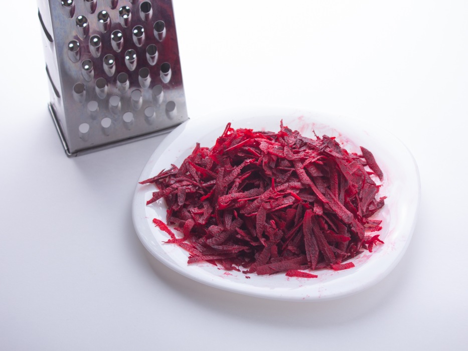 Свеклу очистить и натереть на терке.