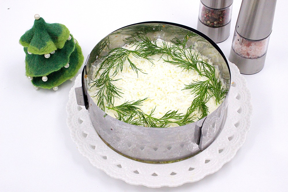 Один из любимейших салатов моей семьи, Мимоза постоянно появляется на нашем праздничном столе. Тем более её спокойно можно преобразить в этакий закусочный торт, который и вкусен, и нарядно выглядит. В этот раз новогодняя тематика и, я надеюсь, от украшения моей Мимозы веет именно этим праздником.