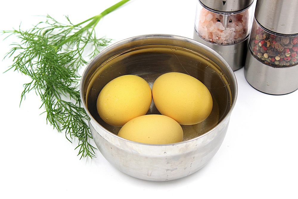 По истечении 10 минут яйца выбрать и переложить их в холодную воду.