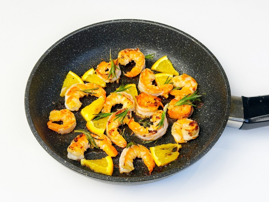 -Не перегревайте креветки. Они готовятся быстро, достаточно буквально пару минут обжарить их на сильном огне с двух сторон. Пережаренные креветки становятся жесткими и теряют нежный вкус, достаточно легкой румяной корочки.