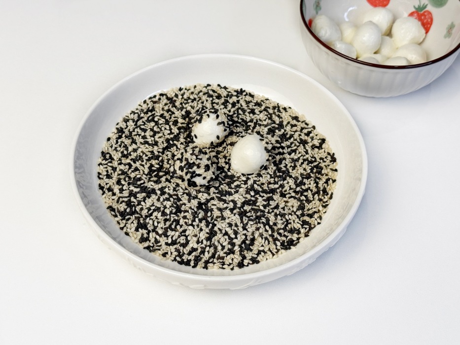 Шарики моцареллы обвалять в кунжуте.