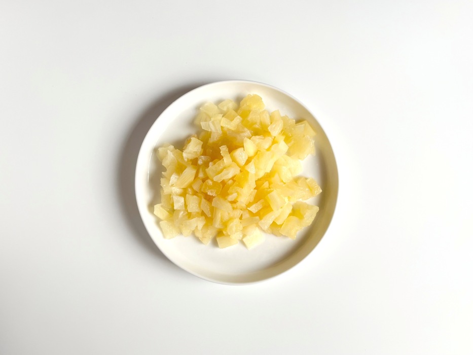 Ананас мелко нарезать.