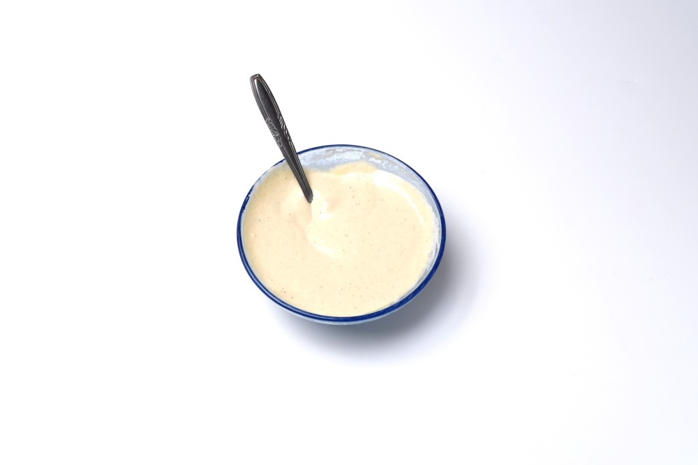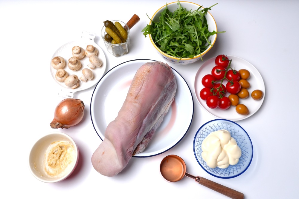 Итак, уже ясно, что каждый ингредиент в салат добавлен не просто так, а дополняет “главного героя” и делает салат по-настоящему ярким. Поэтому и заправка не может быть просто майонезом. Майонез будет основой, а дополним мы его топпингами, которые всегда идут в паре с языком - хрен и горчица. Благодаря нежной, пикантной заправке все ингредиенты в тарелке точно “поженятся”!
