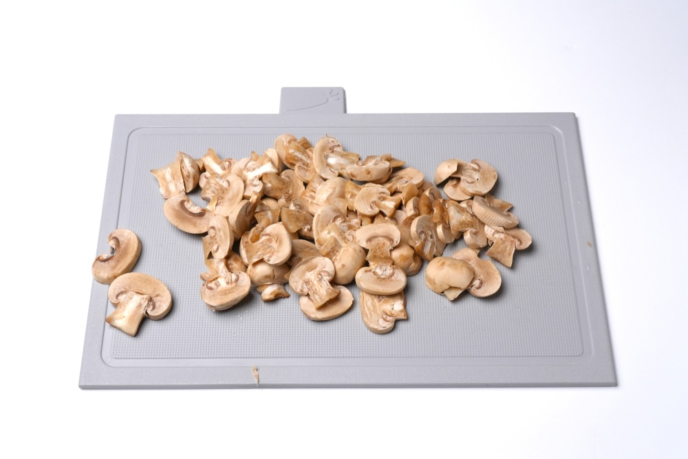 Грибы очистить от грязи. Нарезать грибы тонкими пластинами.