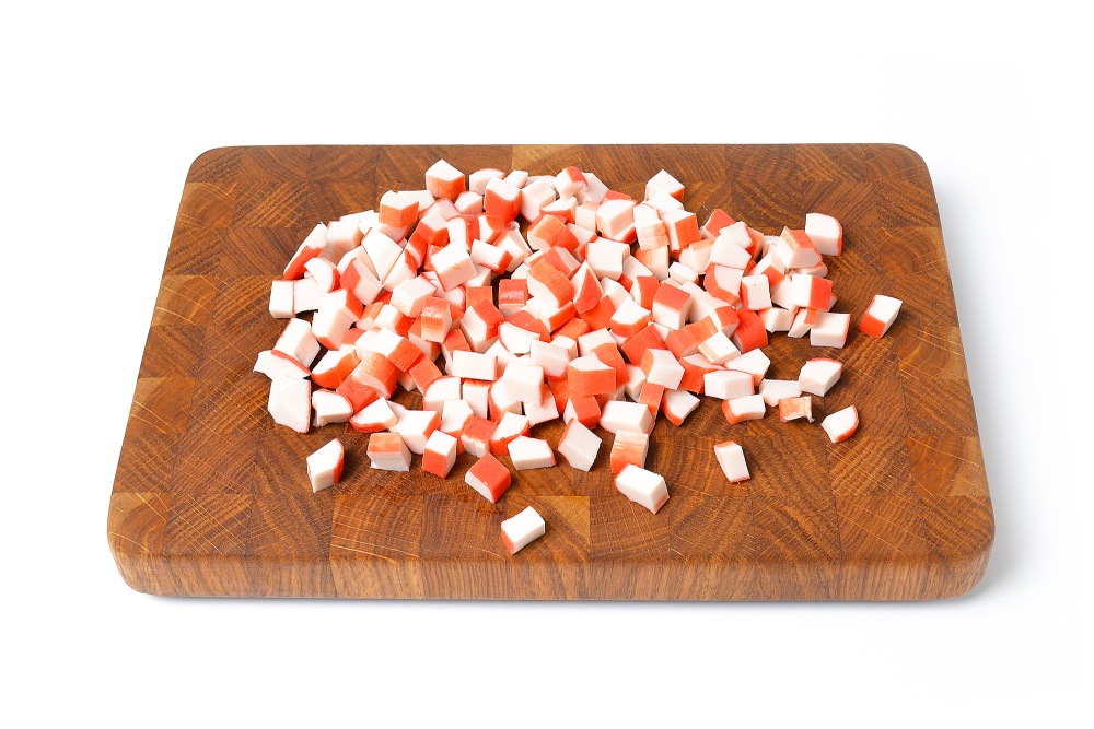 Совет: удобнее всего нарезать слегка подмороженные палочки, поэтому доставайте их из морозилки за 20-30 минут до начала приготовления.