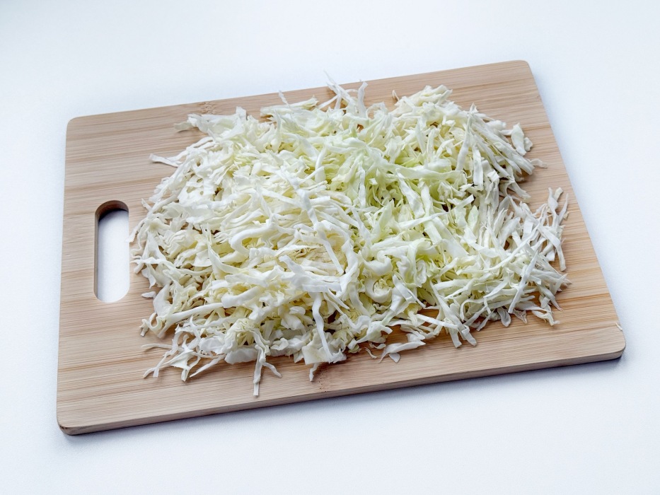 Подготовить капусту. Белокочанную капусту тонко нашинковать острым ножом или с помощью шинковки.