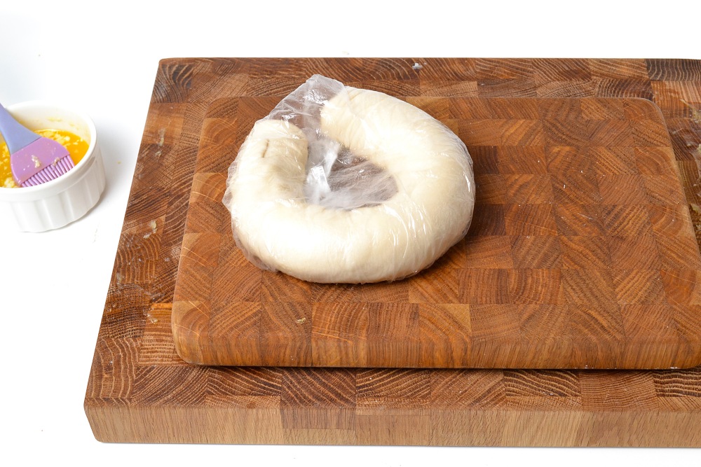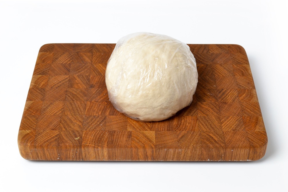 Сформировать шар, завернуть в пищевую пленку или пакет. Оставить на 20-30 минут на столе.