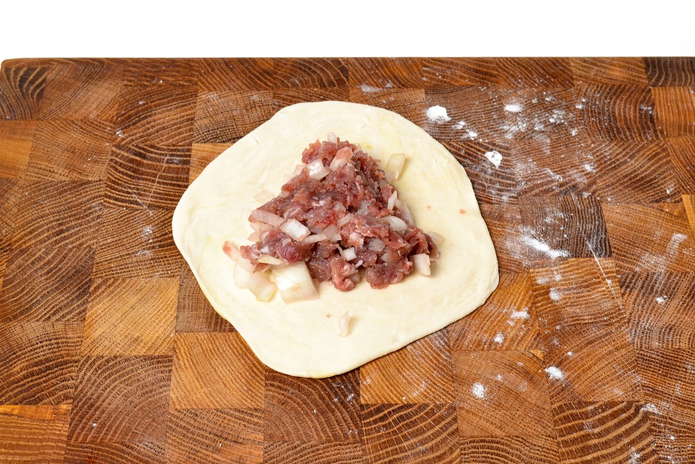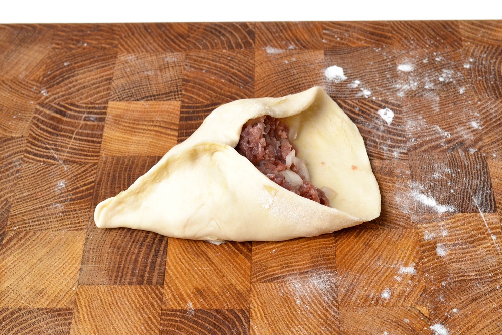 Традиционно в самсе, чтобы она была сочнее, используется рубленое мясо, но можно немного облегчить себе задачу и приготовить мясные пирожки с фаршем. А сочности добавит большое количество лука, которое характерно для многих восточных блюд.