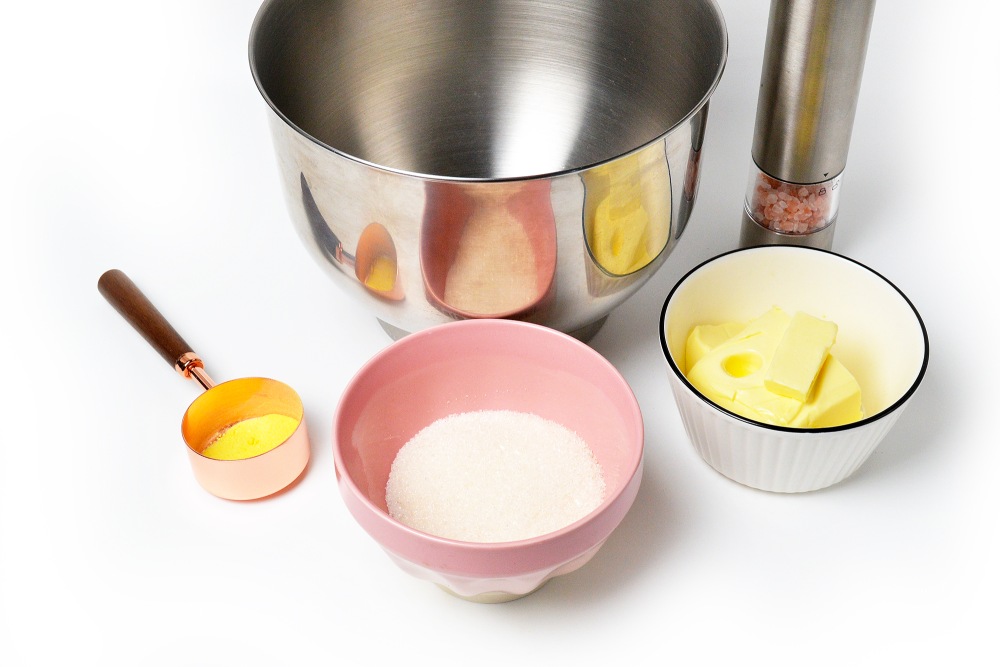 В чаше, в которой будет замешиваться тесто, смешать масло с сахаром, солью и цитронетом. Можно использовать ручной или планетарный миксер. Взбить до легкого объединения около 1 минуты.