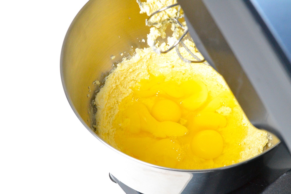 Добавить яйца и взбить на высокой скорости до однородности и пышности около 3 минут.