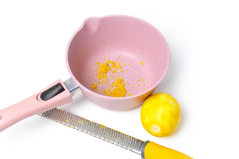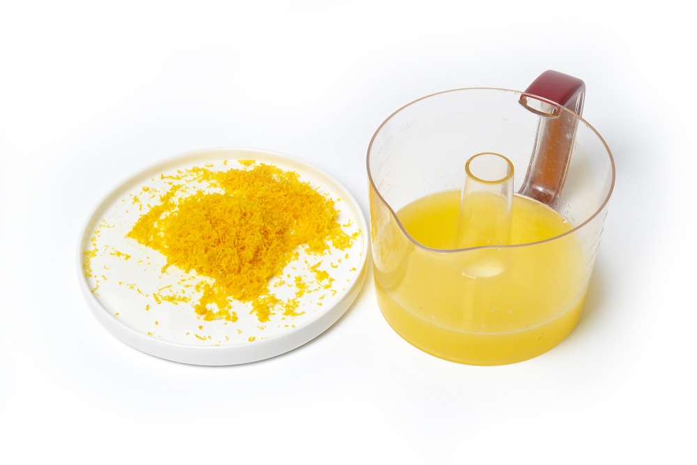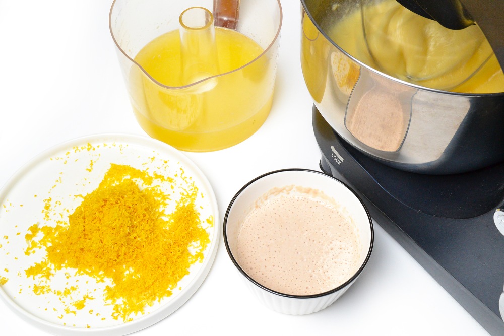 На следующий день приступить к тесту: выдавить сок и снять цедру с 3 лимонов.