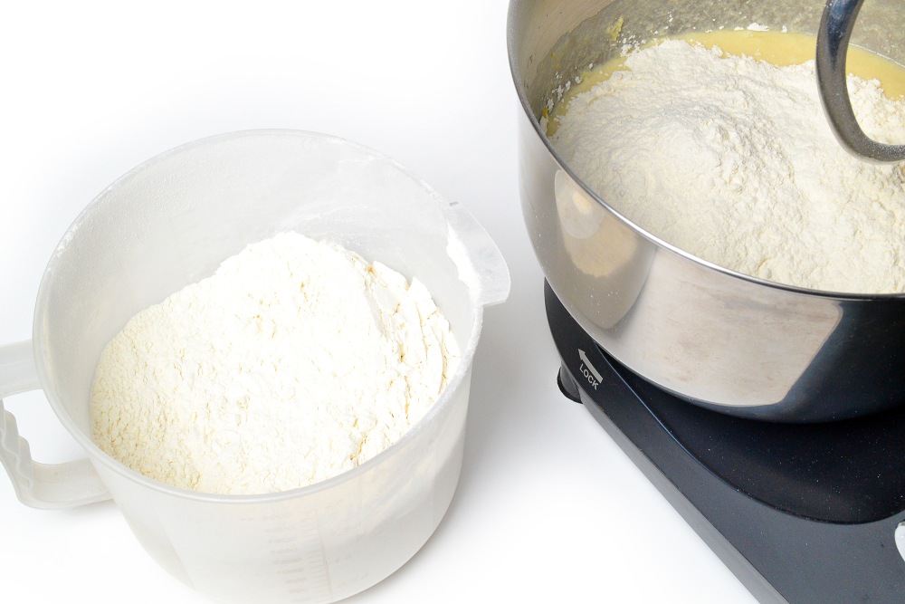 - Если используете планетарный миксер для замеса, учитывайте мощность двигателя: для 1000-1100 Вт максимум можно брать 600-800 г муки, с 1 кг муки справится миксер от 1200 Вт. Иначе двигатель тестомеса быстро перегреется и отключится. Исключение – миксеры KitchenAid и другие марки с прямым приводом, мощность которых указывается в диапазоне 250-350 Вт.