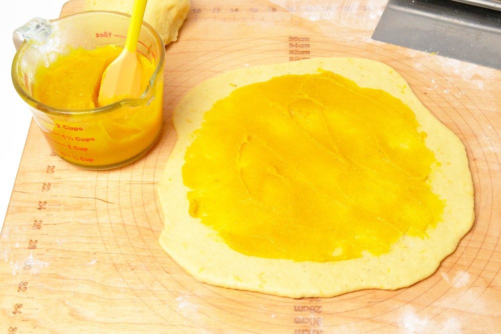 Добавить лимонный курд. Он очень хорошо загустел и прекрасно держит форму. Постарайтесь разделить его на 6-7 равных частей – на столько, сколько у вас куличей.