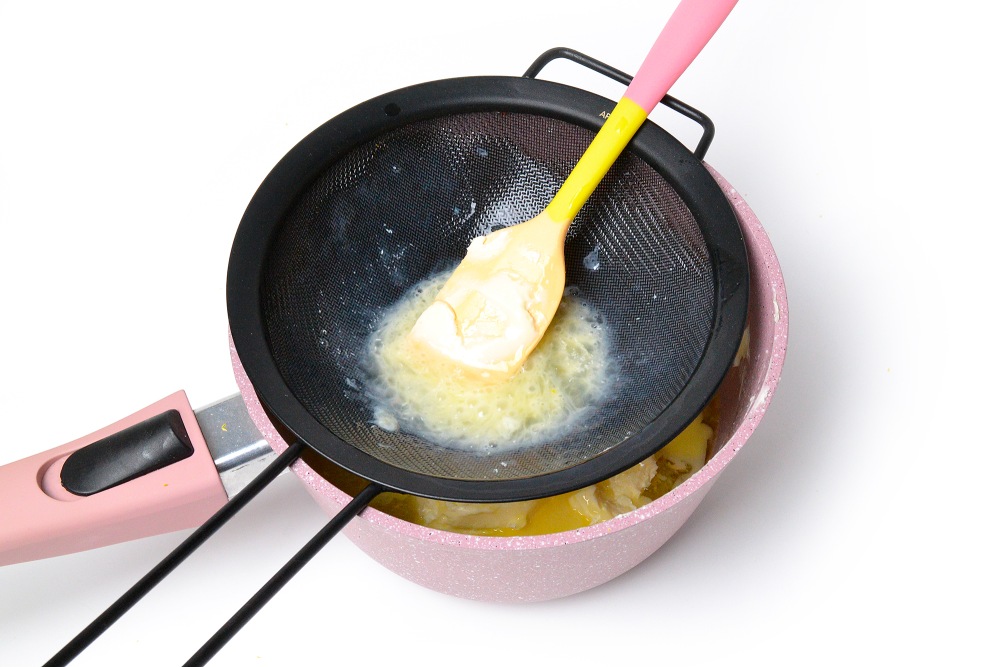 - Протирать яйца через сито при приготовлении курда не обязательно, если вы протираете его для удаления цедры после варки.