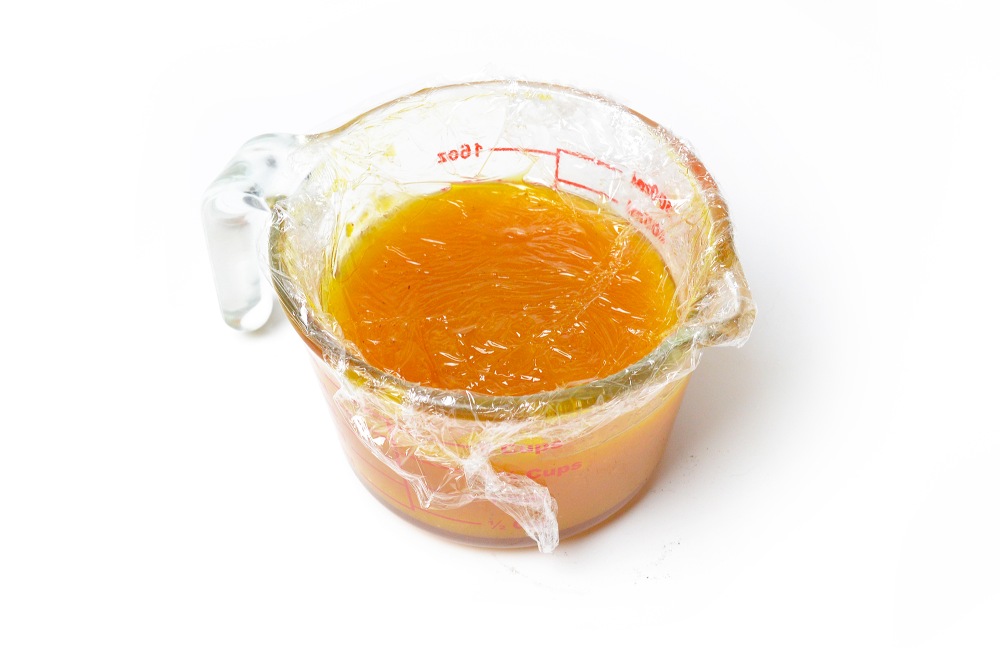 Процедить в отдельную емкость, накрыть пленкой в контакт и убрать в холодильник после остывания на 10-15 часов.
